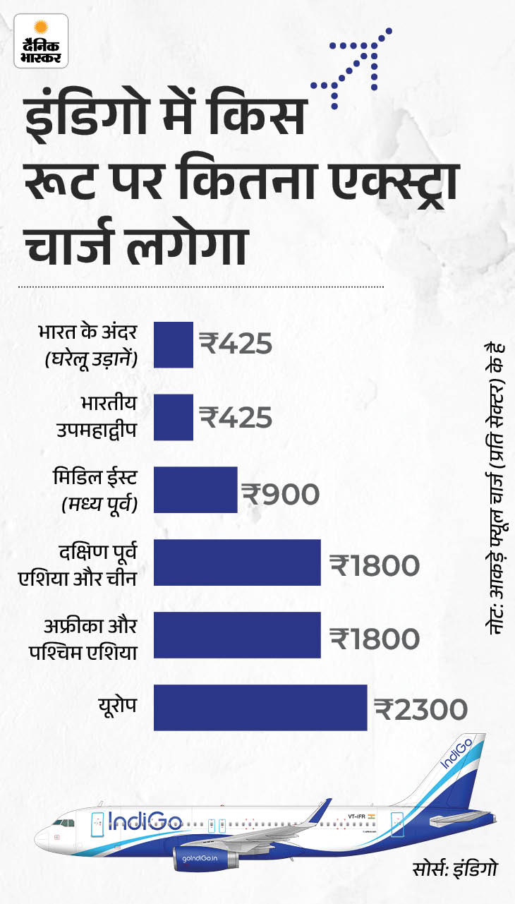 एअर इंडिया के बाद इंडिगो की फ्लाइट्स भी कल से महंगी हो जाएंगी। देश की सबसे बड़ी एयरलाइन कंपनी ने शुक्रवार को सभी घरेलू और इंटरनेशनल फ्लाइट्स पर ‘फ्यूल सरचार्ज’ लगाने की घोषणा की है।