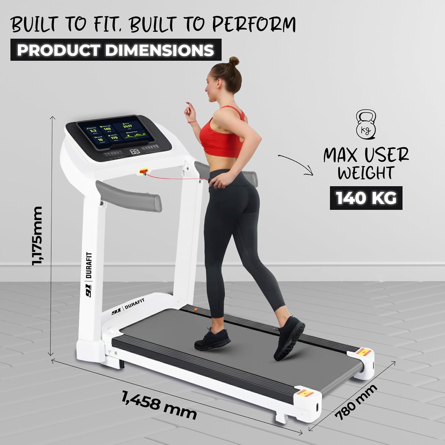Durafit91 Sprint Pro 5 HP Peak BLDC Motorized | Hydraulic Foldable Treadmill | 25Level Auto Incline| 16 Km/Hr Max Speed| 140Kg User Weight| Bluetooth Speaker| Wynd app | Home use| White