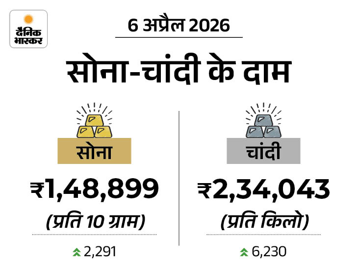 वहीं, एक किलो चांदी 6,230 रुपए बढ़कर 2.34 लाख रुपए पर पहुंच गई है। इससे पहले शुक्रवार को इसकी कीमत 2.28 लाख रुपए प्रति किलो थी।