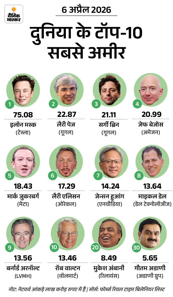 कल दुनिया के टॉप-10 सबसे अमीर कौन रहे यह भी देख लीजिए…