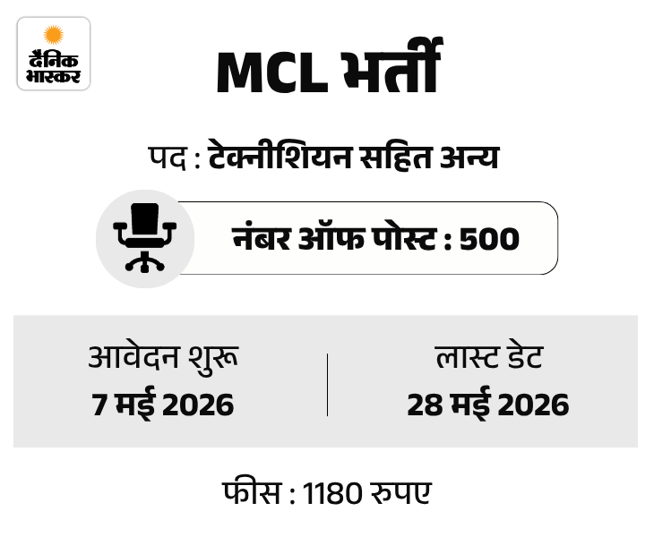 महानदी कोलफील्ड्स लिमिटेड ने असिस्टेंट फोरमैन और टेक्नीशियन के 500 पदों पर भर्ती निकाली है। उम्मीदवार ऑफिशियल वेबसाइट mahanadicoal.in पर जाकर आवेदन कर सकते हैं। फीस जमा करने की आखिरी तारीख भी 28 मई तय की गई है।