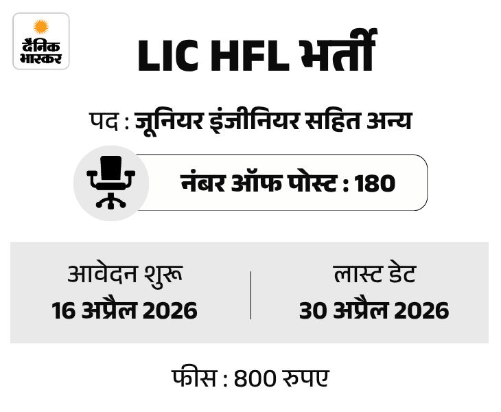 एलआईसी हाउसिंग फाइनेंस लिमिटेड (LIC HFL) ने जूनियर असिस्टेंट के पदों पर भर्ती निकाली है। उम्मीदवार ऑफिशियल वेबसाइट lichousing.com पर एक्टिव लिंक के जरिये आवेदन कर सकते हैं। इस भर्ती के लिए फीस जमा करने की आखिरी तारीख भी 30 अप्रैल तय की गई है।