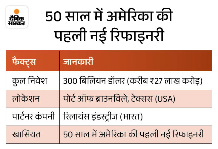 अमेरिका में सख्त पर्यावरण नियमों, पुराने प्लांट्स के विस्तार पर फोकस और भारी लागत के चलते 1970 के दशक के बाद से किसी नई कंपनी ने रिफाइनरी नहीं लगाई थी। रिलायंस का वहां जाकर प्लांट लगाना भारतीय कंपनियों के बढ़ते ग्लोबल रसूख को दर्शाता है।